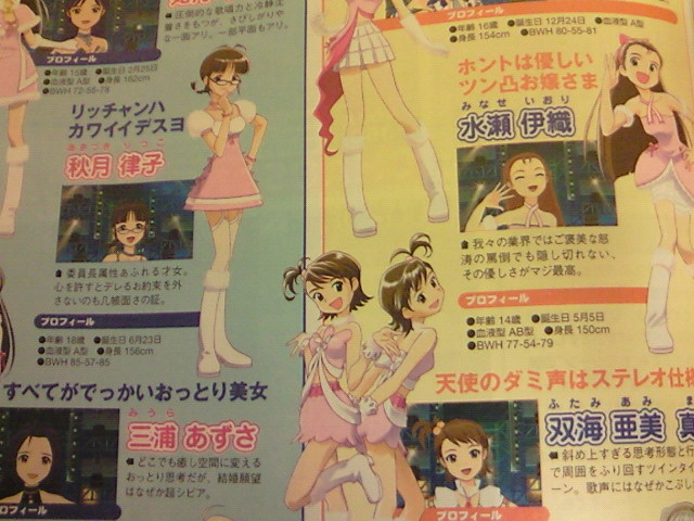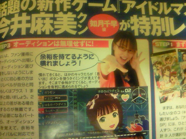 い、いかんタカシP(アイマス宣伝相)の宣伝に踊らされちゃってるw でも、ゲーマガも買わなきゃだしなあ。お金がお財布が… というか、アスキーにしてもフラッシュにしても記事が…w アスキーはアイドルの紹介が酷いです。いい意味でw とりあえず、画像見た限りでは、やよいしかまともな紹介文じゃないようなw 亜美・真美とか春香は酷いですよねw 個人的にはあずささんの紹介がツボだったりw 確かに大きいですけど色々w あと、今井さん… もう、突っ込みどころが多過ぎですw よし、買ってこなきゃ!