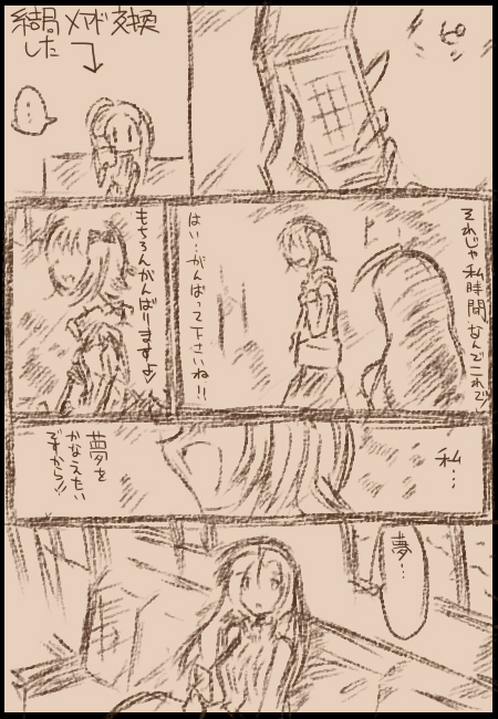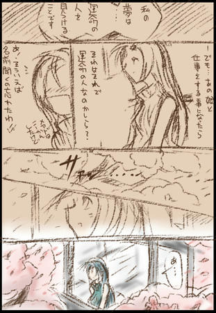ちょwww私の仕事先www ただ、あそこって都内へは意外と近いので、遠距離通勤とは言えないのではないかと思います。 私のイメージでは小田原とか(行った事無いですが)って感じかなーと。千葉県だと、いすみ市とか香取市とか。 名前聞くの忘れたとか、あの2人ならありそうwと思いましたが、でも春香は最初に自己紹介するよな・・・とも思ったり。 きっと、あずささんのマイペースっぷりに、いつものペースが狂ったんでしょうね。 しかし、最後だけカラーにするなんて、相変わらずタカシPはうまいですね。 ところで、タカシPは確か西東京在住だったと記憶してますが、なぜに千葉NTとかそんなに詳しいんでしょう? もしかして千葉NTでアケマスやってる時に、知らずにタカシPと遭遇してたりとか!(ドキドキ)