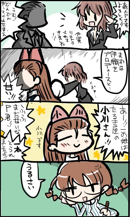 だいぶ昔はアイマスお絵かき掲示板で漫画描いてたのですが・・・ やっぱりテキスト機能が欲しいですよね(ついてる?) 見たいという奇特な方がいれば下のコミュからどうぞ↓ メンバー100人突破記念漫画です。どこが? という突っ込みは胸にそっとしまって下さい。 というかもう120人いってるよ!! ・・・いったいどうなってしまうんでしょう・・・このバニー包囲網・・・。 ・・・・ ま、人のコミュだからいいか☆ (おい) あと遅ればせながら某かの付くPからのリクエストに挑戦中です! リク絵はね 忘れたころに やってくる(5・7・5) 練習中なので続きに格納します。