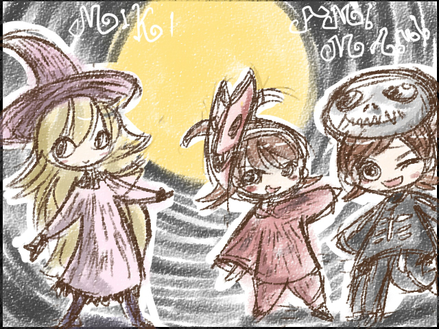 『NIGHTMARE BEFORE IM@S』 昔々のそのまた昔―いったい『黒春香』はどこからやってくるかって? それぞれの色の『春香』にはそれぞれの『世界』があり その場所からやってくるんだ。これはそんなお話。 Boys and Girls of everyage (男の子も女の子も) Wouldn't you like to see something strange? (不思議な物が見たければ) Come with us and you will see... (私たちと来るがいいさ…) This our town of Harurunn! (はるるんの街へ!) 【登場人物ラフ】 【ハルカ・スケリントン】 ハルカウィン・タウンの女王 本当は心の優しい少女だが周囲の期待に応えるため気丈に振舞う。 だが本人はその事を気にかけ一人墓場で憂いに耽る。 【ゾンビのユキー】 体は死んでるけどお茶は好き。 ハルカの秘めたる憂鬱を見抜いてる少女。 こうダークでキッチュでゴスな物に憧れたり 本当はもっとゴスゴスさせたいんですよ。ゴス!! |