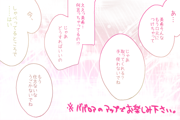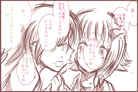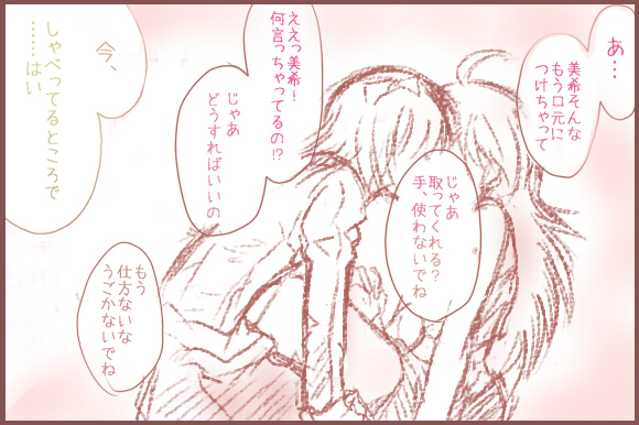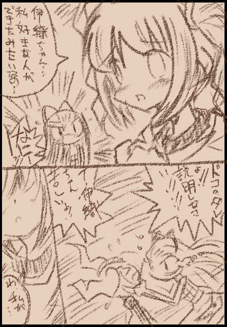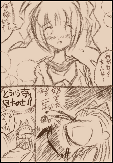 それをイラストにするのが流れのようです。 と思ったら発端は自分だったよ!ギャフン!! というわけで 『ミッション:↑の絵のカメラの離れた図に挑戦せよ!!』 に今日は挑みたいと思います!! りよ。さんにだけそんな真似をさせるわけにはいかない!! タカシPがニコマスPとしての責任を持って難関に挑みたいと思います! 自分の力がどれほどあるか分かりませんが…。 この『アイマスまんが道場』! 乗り越えてこその新年ではないでしょうか!! というわけで 【提出1・ロングショット】 ・・・ ただこれだと 「美希受けとかありえねーww EF限定オデから出直してきてね★」 という厳しい指摘も受けそうなので…。 春香さんが攻めじゃ駄目だったか…。というわけで 【提出2・いつのまにか攻守逆転】 たぶんこれで春香受けが好きな人とも平和的解決。 年下攻めが好きな人も満足だね! …いかがでしょうか…自分なりに新しい道を踏み出すための… 慣れない事に挑戦するこの覚悟! 「うん、タカシPが描きたかっただけだよね。」 とのツッコミは心にそっとしまっときます。 あと自分なりに今後の活動方針として①が好きか、②が好きか。 拍手ボタンを置いてみたいと思います!なんの拍手だ。 しかし…これがもしかしたらりよ。さんとの初の合作だと思ったら… 泣けてきました。 次は修羅場トリオか・・・。 PR