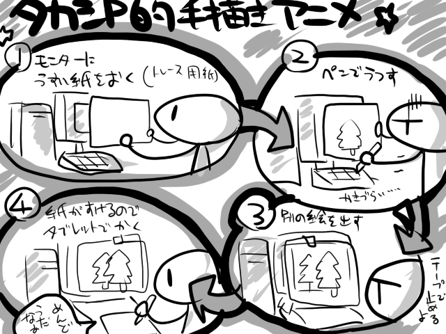しかし雑誌で千円越えは痛いです。 あと前にタカシPが新たなスタートと言った件なんですが、 このサイトを見て↓ http://www40.atwiki.jp/tegakimad/pages/13.html(手描きMADwiki) 初めて他人がどうやって動画を作るか見たんですよね。 今年の12月はじめまで興味なかったのですが…。 もう目からウロコw 今まで何やってきたんだとwこの手法ならだいぶ今までの手間がはぶける! 衝撃的だったのはSaiで別々に描いた絵を一つのレイヤーでまとめられる事!! 今までの手法↓ つまりモニタの上にトレス用紙をテープで止め鉛筆でなぞって…。 そのトレスした絵を見て次の絵を描く→繰り返し。 この作業がいらないのは大きい!! この記事を読んだ人の中にはあいた口が塞がらない人もいそうですが…。 動画のavi形式とかswf形式とか存在する事を知ったのも今月 mp形式とかに至っては素で分かりません。 「mp…マップっすか?」 と素で答えたら某ニコマスPどん引き あーあと絵に関しても全く知りませんよー。 だいたいjpgとかbm形式の差も意味も良く分かってません。 そもそもjpgって何ですか?ジャパン? 日本だけで通用する画像なのかな…。あとパスとかも 「パス…?絵描いてる時にボールでも渡すんですか?」 と友人の絵描きに話したら鼻で笑われました。 「出直してこいw」と まあ今でも良く分かんないですけどね! 他にも疑問なのは解像度とかの項目。全くいじって無いけどなんか違うんですかね? と!このように動画を作る以前の問題が山ほどあるので。 来年はそこを解消できればなと!! 今までは「自分は自分のやり方で行く!」と尖ってましたが やっぱり人様の工程とか見て勉強したほうがいいですよねw 逆に考えれば『まだ学ぶたのしさが一杯ある』という事です!! 動画を一年以上続けてまだ新しい挑戦が出来るなんて… 本当に自分はラッキーだと思います!心機一転スタートです!! あと自分みたいにPCの知識無くても動画はなんとか作れるものです! ここの日記を見て 「こいつが出来るなら俺でも出来るんじゃん?w」 と思ってニコマスPが増えるならとても嬉しい事です。 自分の拙い経験上『愛』と『根気』があれば…何とかなるもんです!