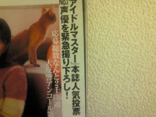 まるでは●ま寄稿のようと思ったらあなたの負けです。 まずはこの写真を見てほしい またフラッシュか しかも前回のアイマス声優特集が大反響を踏まえてのアンコール特集。 全国のPさんは本当に元気ですよね!! 今回は伝説のみせぱんで応募獲得数1位を取ったミンゴスソロ特集。 ミンゴス汚い!! そんな…ショートパンツで全国のPの気を引くなんて… 今号もミンゴスの非道な攻撃の嵐!!例をあげると。 ①グラビアで太もも全開 ②中学時代のジャージ姿写真披露 ③高校時代の貴重なブルマ姿の資料 まさに非道!そこまでするかミンゴス!! タカシPは正直怒りを抑えられませんでした…全国の純粋な千早ファン。 そしてアイマスガールズを愛するファンの心を揺り動かすなんて! 正直余りに憤りを感じたため… 速攻で資料として検証するため コンビニのレジにダッシュで向かった べ、別に写真応募今回こそ当てるためじゃないですよ!? 今後こういう非道な事が行われないよう購入してガツンと意見を述べていかなくては!! 全く…ニコマスPも楽じゃない…。 あとぬーぬーとはらみーの特集はいつですか?(え) PR