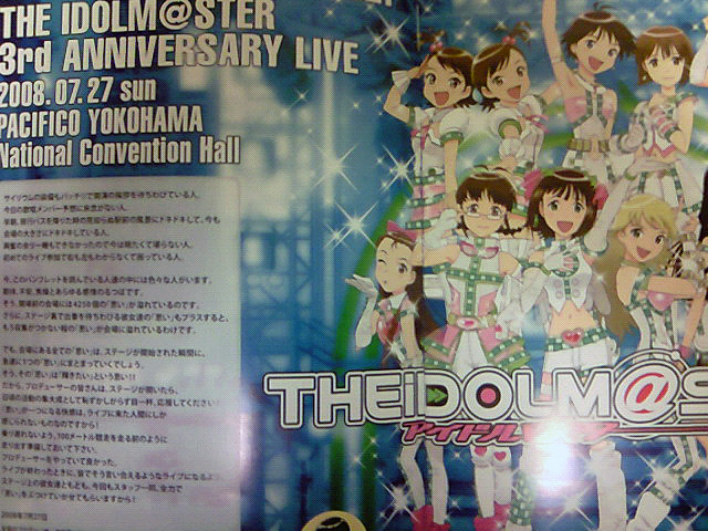 正直自分にとってライブとは アイマスに対する忠誠心を高める儀式のような物になってます。 ああ…タカシPも遠い所へ行ってしまった…と思われそうですが 今後アイマスメインで活動する為のテンションを保つため自分にはどうしても必要。 余裕があればレポなどもしたいと思ってます。 ―それでは!…いざ横浜へ!!― |