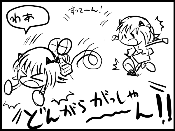 最近何かを忘れてると思ったら自分の動画でした。 ガクッ。(←効果音) …というわけで 『切り絵アニメでアイドルマスター』完成しました。 わーい。 で ちなみに 今まではアイドル全体を考え作品を作ってましたが 今回はプロデューサーと春香の一対一に焦点を置いて作品を作りました。 (某Pの影響を受けた本編絵。本人了承済みです!) 視点は春香視点で。 自分なりに春香の内面ギリギリに迫ってみようと思いました。 たぶん人が何かを得る事は何かを失う事だと思います。 ハッピーエンドでもなく 皆が笑って過ごせるような世界観でもないですが 見た人に心に残る作品になってくれればよいなあと…。 そうなってくれれば幸いです。 ま、 「タカシPの作品だからね!お目当ての動画ついでに見てやるか!」 でも結構です!むしろそうして。 たぶん見た人によって違う印象を持つ作品なので皆さんの反応も楽しみなところ…。 今のところ7月2日の早朝にあげる予定なのでよろしくお願いします。 PR |