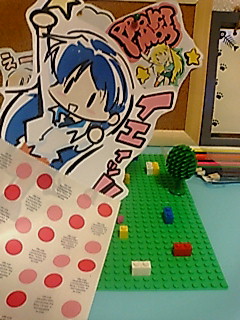 というわけでメイキング2回目です。 ↓の写真より ああ、タカシPはレゴで遊びながらMADを作ってたのね。 と、いうわけでも無いです。 今回のshinysmileの40秒からの空撮部分。 あの部分がコンテが出来てから大変になるのは分かっていたのでキャラの配置、そしてカメラの流れ。 3次元に置き換える必要がありました。 ・・・ ・・・ でなんでレゴ? と突っ込まれても折角実写化用に三千円で買い 「これは新しい。アイマスとレゴのコラボ。自分がレゴレゴ動画というジャンルを築く日も近いな。 どうしよう・・・ レゴから感謝の気持ちでレゴ一年分贈られて来たら。そんな置ききれないよ。 よ―――しやるぞ!!わ――無理―!!!」 という経緯があったとしか言えません。 可愛そうなレゴ。ここで使ってあげなければいけませんでした。 レゴもいい迷惑です。 コンテの意図や今回のテーマなどは後ほど・・・ あとかみたPさんの方へリンクを貼らせてもらいました。素敵な絵と素敵な世界観を作り上げる方です。 それにしても何なんでしょうこのとりとめの無い文章は。 だいたい工程の解説になってないよ!自分! 方向性を模索しながら今回はここで締めさせてもらいます。